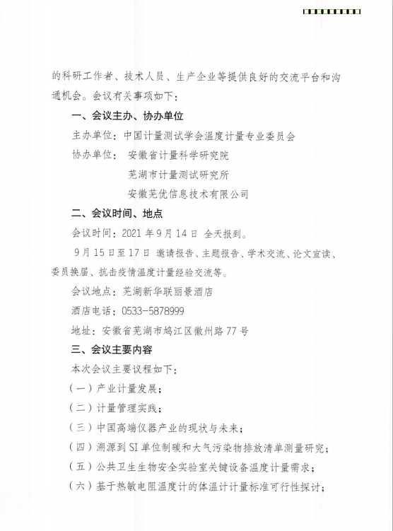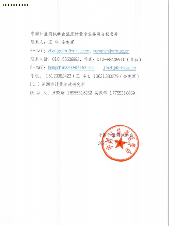 2021年溫度計(jì)量專業(yè)委員會(huì)會(huì)議通知